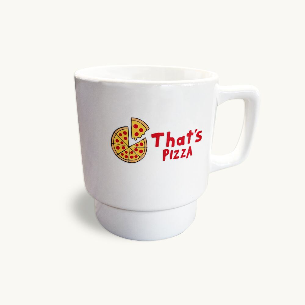 That's PIZZAのロゴ入りスタッキングマグカップです。